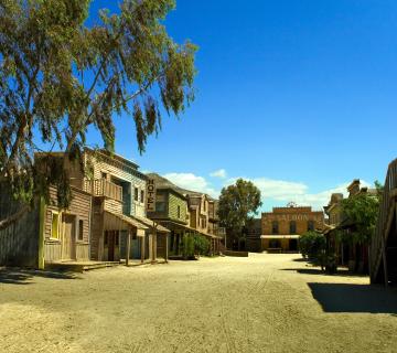 Fort Bravo, Texas Hollywood, un icónico poblado cinematográfico en Tabernas, España, fusiona escenarios americano y mexicano desde 1966. Inicialmente solo para filmaciones, en 1984 abrió al público, ofreciendo espectáculos wéstern. Propiedad de Rafael Molina y Paco Ardura desde 1981, es escenario de películas como "Los hermanos Sisters" (2018) y series como "Penny Dreadful" (T. 3, 2016) y "That Dirty Black Bag" (2022). Con servicios completos, es el epicentro de la actividad cinematográfica en Tabernas.